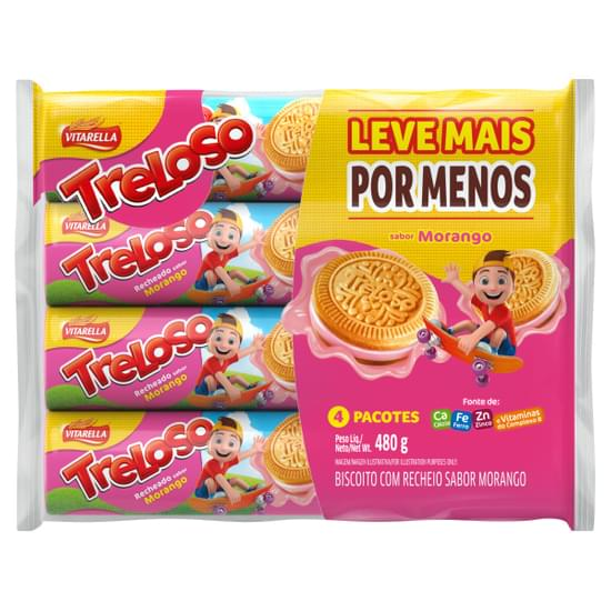 BISCOITO VITARELLA TRELOSO RECHEADO LEVE MAIS PAGUE MENOS 480G MORANGO