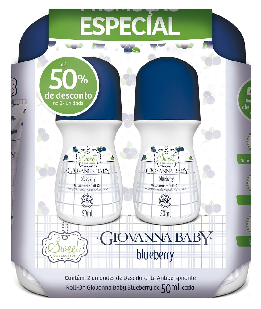 DESODORANTE ROLL ON GIO BABY 50% NA SEGUNDA UN 50ML BLUBERRY