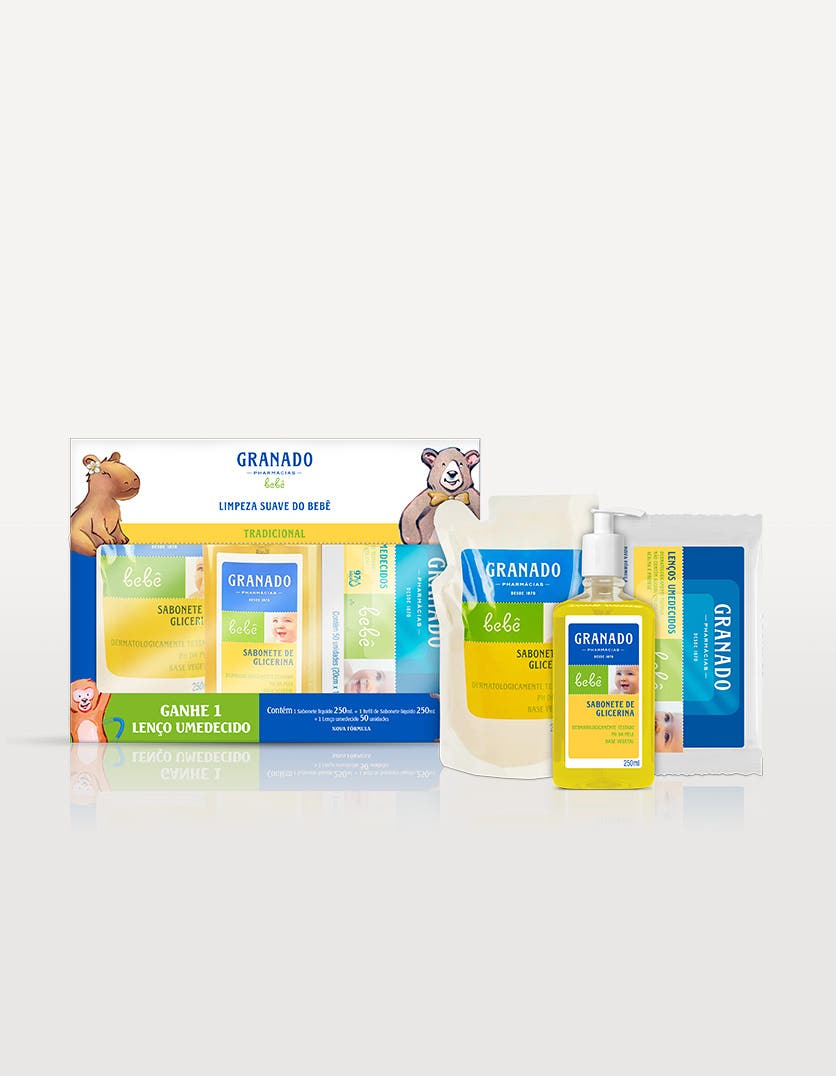 KIT GRANADO BEBE SABONETE LIQUIDO + REFIL + LENCO TRADICIONAL